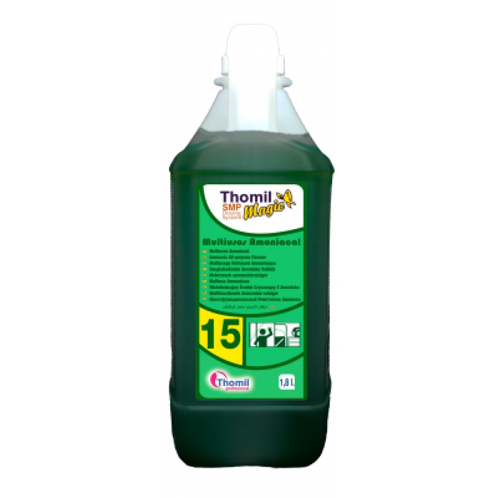 Nettoyant ultra-concentré à base d’ammoniaque, formulé avec des tensioactifs très efficaces, nettoie et dégraisse les sols, les murs, les vitres et tous types de surfaces lavables, procurant un agréable parfum de pin frais, très apprécié dans le nettoyage général de la salle de bain.